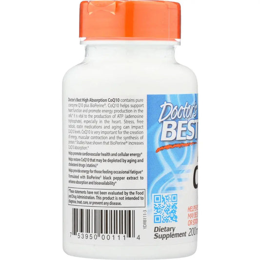 Doctor's Best High Absorption CoQ10 with BioPerine® – 200 mg, 60 Veggie Caps | Heart & Energy Support