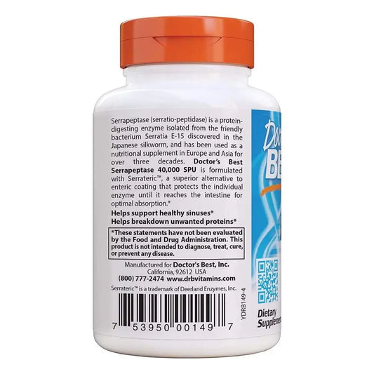 Doctor's Best Serrapeptase 40,000 SPU – 90 Veggie Caps | Sinus & Inflammation Support