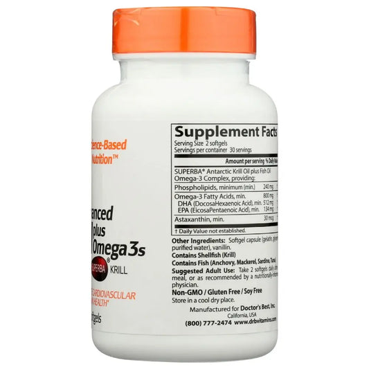 Doctor's Best Enhanced Krill Plus Omega-3s – 60 Softgels | Superba2® Krill Oil, Heart & Brain Support